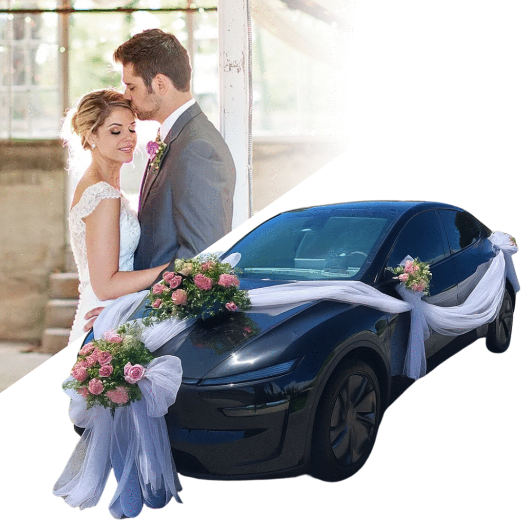 With wedding car service, details are everything. At eCarJax, we offer a luxury wedding car service driven by Tesla that brings a hint of contemporary elegance to your wedding day. Our all-electric Tesla Model Y car service fleet brings a silent, smooth, and sophisticated ride, ideal for a couple that treasures luxury, sophistication, and eco-friendliness.